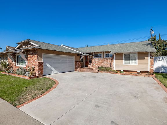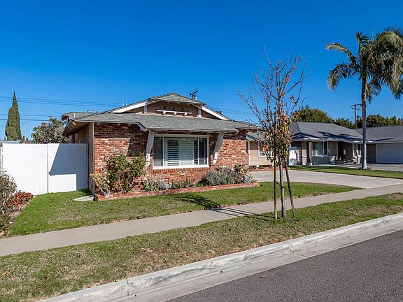Beautiful 3 bedroom, 2 bathroom, single story home in the Mesa Del Mar Community of Costa Mesa! Enjoy a formal entry to the open floor plan with an inviting brick fireplace, open kitchen, and spacious family room. The kitchen features a large breakfast bar, stainless steel appliances, and elegant cabinetry. The primary bedroom offers carpet flooring, a ceiling fan, and a walk-in shower in the primary bathroom. Additional property highlights include French doors to the landscaped back yard, patio, fruit trees, and 2 car garage. Convenient to the Orange County Fairgrounds, schools, and major freeways!