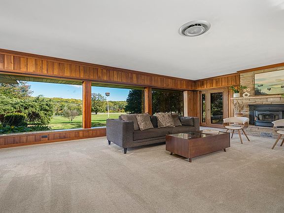RANCH HOME WITH RIVER FRONTAGE AND ACREAGE! Located on the edge of town close to Fairgrounds Park, this sprawling ranch is situated on just over 8 acres zoned AG and boasts stunning views of Blackhawk Statue! With nearly 3,000 square feet of living space there are 4 bedrooms and 2.5 bathrooms along with a large family room that could also be converted into a grand master suite! Bursting with mid-century modern style, the living room features a large, wood burning fireplace and oversized windows with views of the river and statue. The kitchen also has a great view of the property and has loads of cabinets with fresh paint and hardware, new stainless-steel appliances, eat in area and a double-sided fireplace that is open to the formal dining space. Many updates throughout including carpet, paint, hardwood floors and landscaping. An added bonus is that this home was constructed with cinder block walls making it very energy efficient. The river frontage includes an updated pier with new steps and railing ready for your dock and boat next spring! Acreage is zoned AG, with a buildable lot so the possibilities are endless with this land. There is also a 24x36 outbuilding and additional storage shed with plenty of room for storage and your hobbies. Homes with this many features do not come for sale every day, call for your private showing!