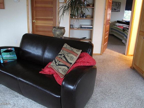 Lake Street bridge Beluga Lake, turn right at Beluga Lake Lodge, veer to the left Lake Street. At the end of the street, turn right on Ocean Drive Loop. 3rd house on the right.Across the road from the beach, this charming home has views of Kachemak Bay & Kenai mounts. Watch sealife & wildlife while moose & sandhill cranes pass through your yard. Vaulted ceiling, d/w w/d, h/w in kitchen. carpet.