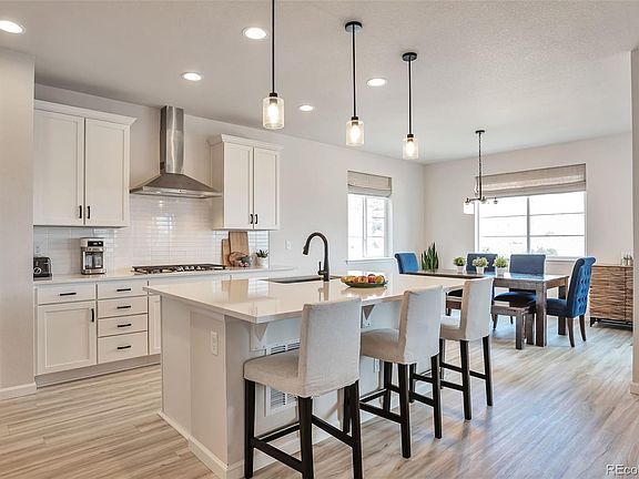 Tucked away on a quiet cul-de-sac just minutes from downtown Castle Rock, this exceptional 2-year-old home offers stunning views of The Rock from your private covered deck—perfect for fireworks and sunsets. Enjoy upgraded features including fully landscaped front and back yards, custom window coverings, and designer finishes throughout. The open-concept main floor boasts a cozy fireplace, gourmet kitchen with high-end stainless steel appliances, and a large Quartz island. Upstairs features a spacious primary suite with mountain views, en-suite bath with dual sinks, and a walk-in closet. Plus two additional bedrooms, a shared bath, and a large loft complete the private family area. The finished walk-out basement includes a rec room, 4th bedroom, and full bath—ideal for guests or a home office. Located near 24 miles of trails, 1,100 acres of parks, and The Grange's resort-style amenities—this home truly has it all!