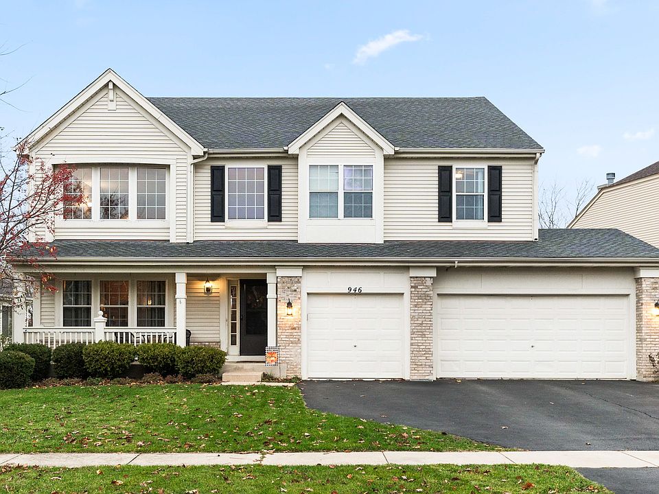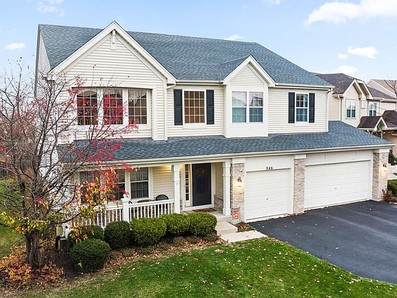 Step into this stunning, move-in-ready home and be immediately greeted by gleaming hardwood floors and a spacious open floor plan designed to impress. One of the largest homes-the Dalton Model-in the sought-after Cambridge Lakes Community, this 4-bedroom plus loft (potential 5th bedroom), 3.5-bathroom home has been freshly painted and is awaiting its new owners. The two-story living room, with soaring ceilings, is flooded with natural light, creating an airy and inviting ambiance from the moment you enter. The heart of the home is the expansive eat-in kitchen, which features elegant granite countertops, new stainless-steel appliances, a generously sized island with additional seating, and a bright, sunlit sitting area. Entertain effortlessly in the formal dining room and living room, while the family room offers a cozy retreat with its stunning gas fireplace-perfect for movie nights or relaxing on chilly evenings. Completing the main level are a convenient powder room and a mudroom with built-in coat and shoe storage. Ascend the extra-wide staircase, framed by oak railings, to the second floor, where you'll find four spacious bedrooms and a versatile loft. The primary suite is a true sanctuary, featuring vaulted ceilings, a large walk-in closet, and your own en-suite bath with a tub/shower combo and a double-sink comfort-height vanity. A second master bedroom with two closets and two additional bedrooms round out the second floor. The loft can double as a separate living room or be finished into a fifth bedroom. Head downstairs to the partially finished basement, the perfect space for a pool table, game room, and living area. A full bathroom with a shower and a separate storage area add both functionality and style to this incredible space. Outside, enjoy your private oasis on the custom patio. The yard is a picturesque setting, perfect for relaxing or entertaining. And don't overlook the three-car attached garage, offering plenty of space for all your toys! Located in the highly desirable Cambridge Lakes community, this home offers access to an array of amenities, including a pool, gym, community center, and scenic nature trails. Walk to the local charter school, recently voted #1 in Illinois, serving PK-12th grade. With its proximity to the I-90 interchange, shopping, dining, and entertainment, this home truly has it all. This property is more than just a house-it's a lifestyle. Don't miss the chance to make it yours. Schedule your showing today!