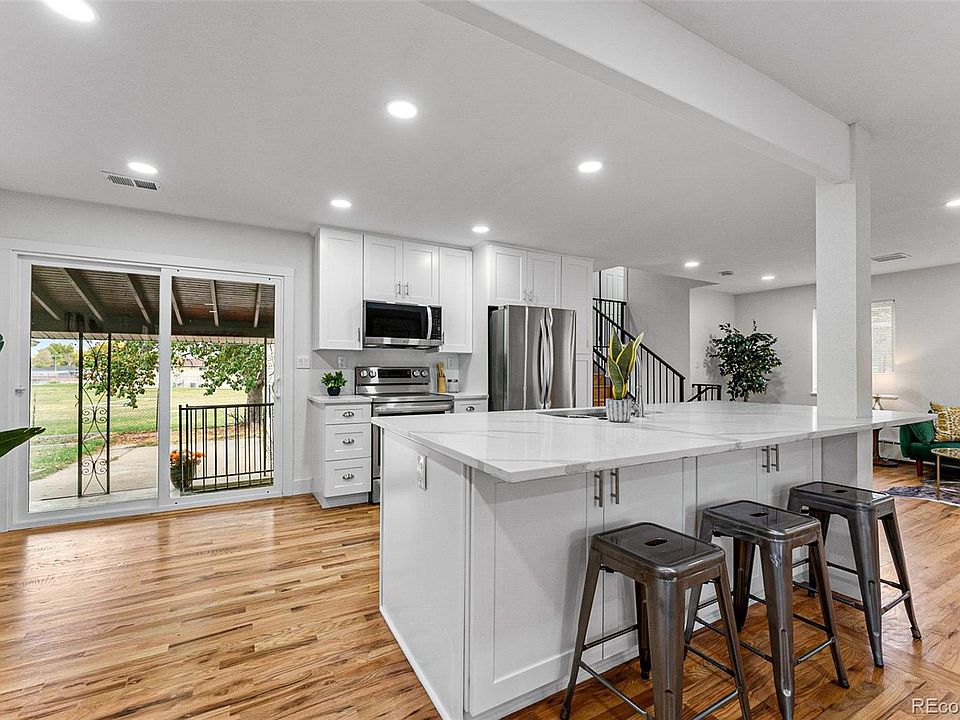 **This home is eligible for financing incentives under the Community Reinvestment Act (CRA) through select lenders. The CRA provides a percentage of the loan amount as a lender credit** This thoughtfully updated, pre-inspected home is move-in ready and not to be missed! Offering four spacious bedrooms and three levels of bright living space, this property boasts numerous upgrades with a unique open-concept floor plan that is rare for this area. In addition to a complete interior cosmetic remodel, the property offers many improvements including a new driveway, a new air conditioning system and air handler, a new water heater, and a newer boiler and roof. The home also features new carpet and a new privacy fence. Additionally, it is conveniently located just minutes from the Anschutz Medical Campus and neighborhood amenities such as Del Mar Park and the aquatic center. 946 Paris St is a rare gem, boasting over 2,000 square feet of above-grade living space. As you enter the home, you'll notice the beautifully refinished hardwood floors and the spacious, open floor plan. The well-appointed kitchen serves as the heart of the house, featuring quartz countertops, new stainless steel appliances, and an oversized island with seating. A new sliding glass door leads to a private outdoor retreat with unobstructed views across the open field at the Burrell Arts Campus. Almost everything is new inside this home; just move right in and enjoy! Call to set your showing today!