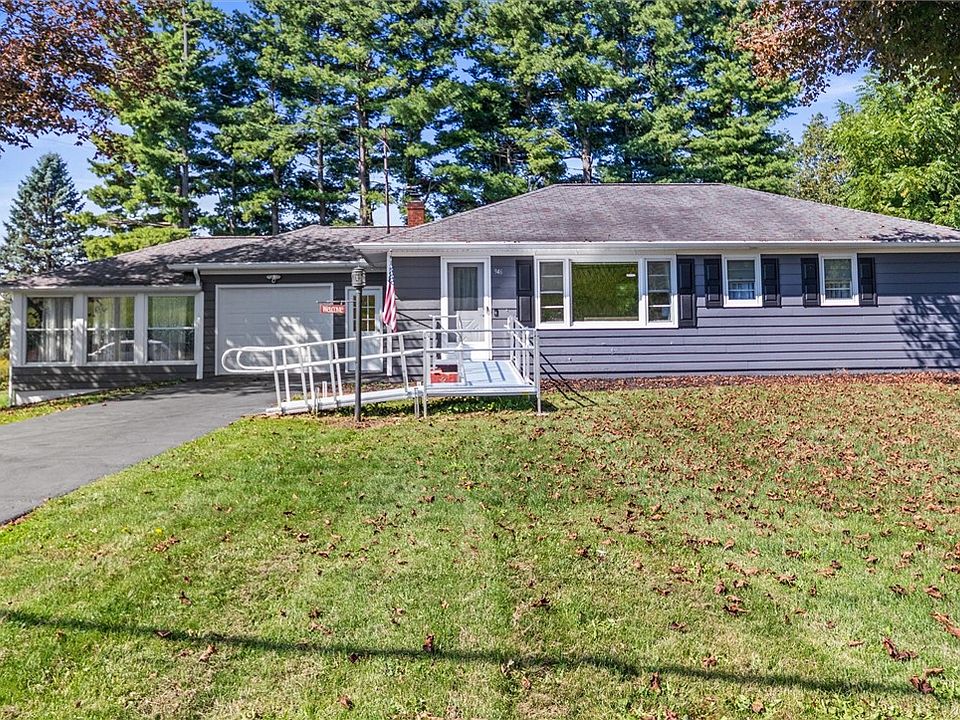 Welcome to this inviting 2-bedroom, 1-bath ranch, perfectly situated just minutes from the village. This home features a spacious living room filled with natural light, ideal for relaxing or entertaining. Enjoy the bright and airy 3-seasons room—perfect for morning coffee or evening unwinding. Step outside to a private backyard complete with a cozy patio, offering a great space for outdoor gatherings. Whether you're a first-time buyer, downsizing, or looking for a weekend retreat, this home blends comfort, convenience, and charm. Open House Saturday September 20th from 12 - 1:30 with delayed negotiations until Tuesday September 23rd at 12pm.