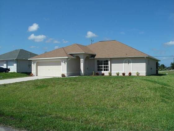 Spacious 4 bedroom 2 bath home with an open great room floor plan. Cathedral ceilings, plant shelves and 16" tile set on diagonal. Raised panel cabinets with crown moulding and an island in the great kitchen. Appliance package available with acceptable offer. Master suite features his and her sinks, his and her walk in closets, linen closet and water closet, plus sliders to the screened lanai. Two extra closets for additional storage space. Guest bath has door to the lanai. Brand new air hand...