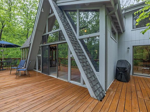 Incredibly well maintained lakefront chalet perfectly nestled in the trees with fantastic views of sought after Audubon Lake. This recently updated light and bright chalet with walls of windows boasts 2 large bedrooms, extra large sleeping loft and two full baths. The fully insulated walls and ceilings with a mix of bead board and tongue and groove cedar and a cozy wood burning stove allow you to enjoy this get away year round. There is plenty of room for entertaining in the expanded great room, three season sun room and the expansive deck. The level lot allows for easy walk down to the lakeside dock. Step into your kayak or boat from the retractable walkway. Almost all furniture included. Just in time for summer! In Rentable Area. Entire septic system and tank new.
