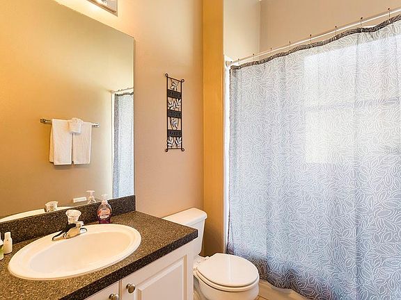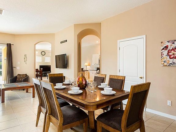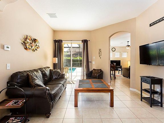 This high quality attractive up market home is quite literally in AS NEW CONDITION & is situated in this exclusive GATED community of private resort vacation homes in the sought after community of Tuscan Hills. Its located on the doorstep of Walt Disney World with Universal Orlando Resort, Sea World Water Adventure parks and downtown Orlando just beyond. Shopping & a multitude of restaurants and local schools are also nearby. Ease of access to major routes reduces travel times to both Gulf and Space Coast beaches. This well designed family home recently benefited from major upgrades and improvements. It incorporates a bespoke designer screened in heated SOUTH FACING POOL & SPA for wonderful sunsets and all day sunshine. Outside the property has been recently FRESHLY PAINTED. There is a covered lanai to shelter from the Florida Sun when needed. Inside too is all freshly painted with all upgraded flooring recently replaced. The kitchen is fully fitted and equipped with all STAINLESS STEEL APPLIANCES included. The home has been wonderfully refurbished and improved . The same love and care is applied to all 6 bedrooms and 4 baths . Check out the featured Harry Potter themed castle room and Disney room the little ones will absolutely adore. Tuscan Hills is a short term rental community so ALL FURNITURE is included for that purpose. Future rental bookings are available for this home that has an outstanding rental history. Furthermore, the whole house automation system that allows you to control access and vital systems with ease. The 24-gate helps make Tuscan Hills Resort a quiet and safe community giving its guests and residents the peace of mind they need to completely enjoy their stay. Tuscan Hills was founded on the basic premise of providing visitors with the best holiday vacation at an unparalleled value. A rental-homes community tucked away from the usual frenzy of a tourist destination such as Orlando, Tuscan Hills is regarded as one of the choice accommodations by foreign and local guests alike. The Clubhouse functions as the heart of Tuscan Hills that throbs for and thrives on every homeowner or visitor who brings business to the community. It is the amenities capital of Tuscan Hills providing guests and residents a venue for gatherings, recreation, business meetings, special occasions, social functions, sports night events, and other activities. Take the younger ones for some outdoor fun to the community's playground park. Set on a manicured lawn, fenced in by palm trees and a few shade trees that cool down the park benches, this activity center will give the youngsters and you a little recreation. No need to feel guilty of missing out your workout routine for the day or for the week. Tuscan Hills Fitness Center in the Clubhouse has an adequate gym equipment to carry out your program. Equipped with sound system and TV, tune in to your favorite station or watch a game while you work out. Take your day's step count, walk your dog, get a glimpse of the entire community with manicured yards and well maintained properties.