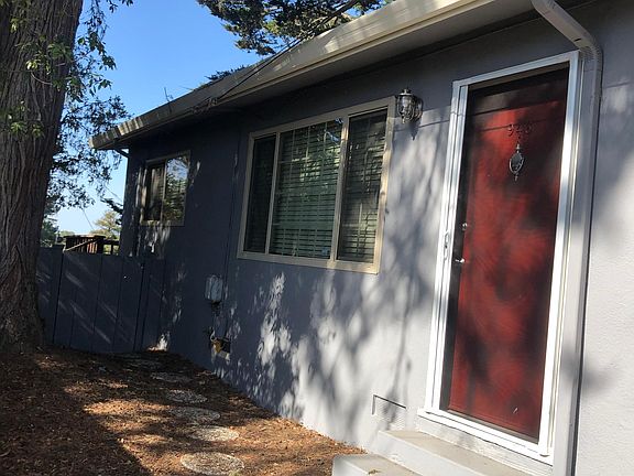 Cute Duplex w/ partial Ocean View. Small Dog Ok . Darling two bedroom snuggled between Redwood and Oak trees with peeks of the ocean. Large redwood deck plus spacious yard.. Hardwood Floors . New Paint. Refrigerator, Oven, Washer and Dryer included. Carport plus storage. Redwood deck. Please do not disturb existing tenants. Owner pays for trash & sewer. Rear Unit. Applicants must fill out application prior to viewing . Call office for questions