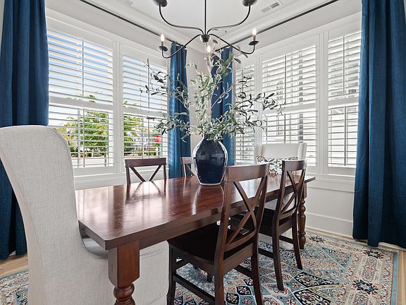This rare 4-bedroom Brownstone by award-winning builder Homes by Dickerson is one of only nine in the highly sought-after 751 South community. Perfectly situated, it overlooks a circular park in the front and backs to a serene, undevelopable wooded area—providing both charm and privacy. The neighboring lot is positioned to maximize natural light, while a white picket fence and a row of evergreens offer thoughtful separation and privacy, an added bonus to Brownstone living. Inside, over $40,000 in custom upgrades highlight the attention to detail throughout. The main level features 10-foot ceilings, crown molding, designer light fixtures, engineered hardwood floors, and a wall of windows that bathe the space in natural light. The chef's kitchen boasts quartz countertops, a large island, and custom cabinetry, opening to the living area—perfect for both everyday living and all types of entertaining. The spacious living room, anchored by a white brick fireplace, extends to an expanded brick patio with fountain and fenced courtyard, ideal for seamless indoor/outdoor gatherings. A separate dining room (or flexible office/sitting room) adds versatility. The first-floor Primary Suite includes a custom walk-through closet with direct access to the laundry and double doors to the private patio, creating a serene retreat. Thoughtful upgrades include Norman shutters, French screens on exterior doors, custom garage shelving, built-in storage in the laundry and bedrooms, upgraded cabinet hardware, a tankless water heater, and more. The second floor offers 9-foot ceilings, crown molding, engineered hardwood floors, a large landing, two generously sized bedrooms with a Jack-and-Jill bath, and ample closet space, including a cozy library nook. The third floor provides a versatile bonus room (ideal for a home office, gym, or media space), plus another bedroom with walk-in closet and full bath. Community living is at its best in 751 South, featuring a clubhouse, pool, gym, playgrounds, pocket parks, sidewalks, a community garden, and year-round social events. Phase 3 will also bring a grocery store, gas island, and boutique shops just steps away. The Brownstone HOA provides peace of mind with exterior maintenance, including landscaping, power washing, gutter cleaning, roof repair, and painting. All of this is just minutes from The Streets at Southpoint, UNC, Duke, RTP, Jordan Lake, RDU Airport, and downtown Durham and Chapel Hill—plus easy access to excellent dining, retail, and the American Tobacco Trail.