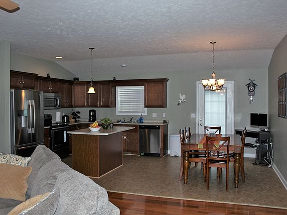 Open Great Room, with Eat -In Kitchen, 3 bedrooms, 2 baths, utility room (hardwood, Luxury vinyl tile (kitchen), tile (bathrooms and utility room), carpet (bedrooms); 2 car garage, stainless steel appliances, Covered Veranda a and Child's Playhouse and Swingset can stay.