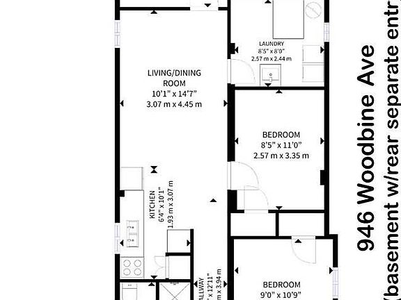 This is a 3 bedroom, 1.0 bathroom, apartment home. This home is located at 946 Woodbine Ave #BASEMENT, Toronto, ON M4C 4B7.