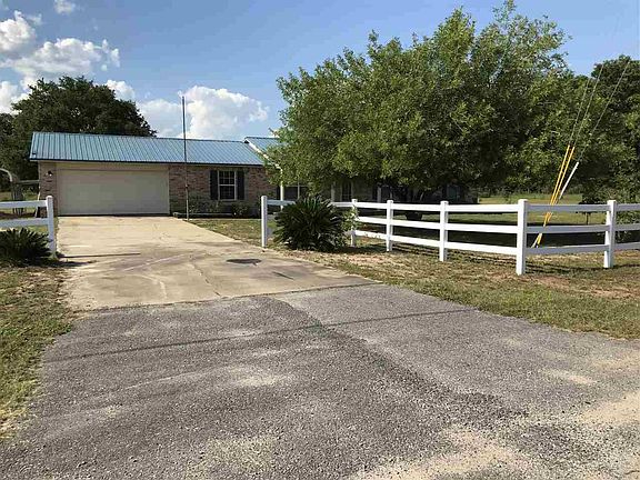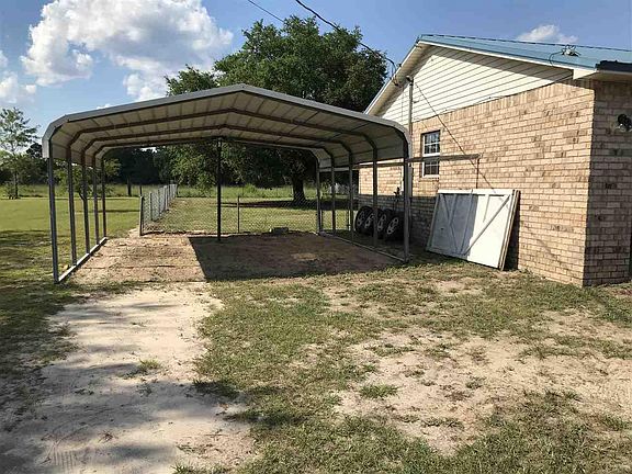 This is it, the dream home you have been looking for! 4 good sized bedrooms, 2 full baths and large great room area, where you can view the living room and dinning area from your kitchen, appliances included. There is also a wood burning stove in the living room for those cool nights, and an updated AC and ceiling fans for those warm days. The garage is huge, room for 2 vehicles, with lots of shelving and an extra storage room. The home was updated for modern hurricane code by Rebuild Northwest Florida, which includes metal hurricane shutters, metal roofing and enforced garage door. Now for the best part, this home sits on a beautiful 4 1/2 acre property that is fenced and cross fenced. Mature oak trees, some fruit trees and flowering bushes, along with plenty of pasture area. There is an out building in the back, and a two car carport on the side of the home as well. The covered deck out back is a great place to enjoy the view.