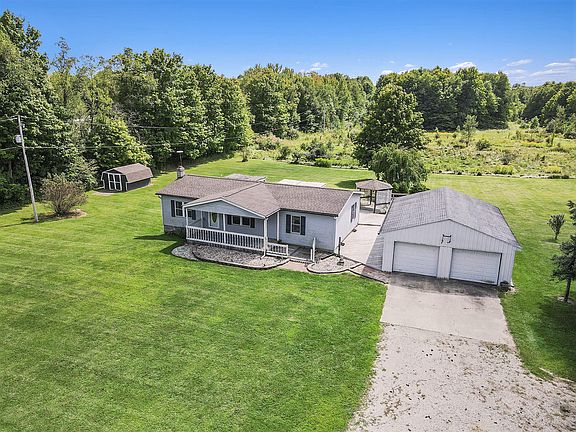 NEW LISTING proudly presented by TEAM POWERS. Discover tranquility and space in this inviting ranch home set on 10 picturesque acres of wooded land. Located just 2 miles from Nashville, MI, this property offers a serene, rural setting with the convenience of nearby amenities This spacious 2-bedroom, 2-bathroom home features a thoughtfully designed layout with everything you need on the main level, including a convenient laundry room. The heart of the home, an updated kitchen, is complemented by a back deck, perfect for enjoying the natural surroundings and outdoor living. Key features include: Whole House Generac Reliable backup power for peace of mind. Central Air Conditioning: Comfort throughout the seasons. Gazebo: A charming retreat in the backyard for enjoying the outdoors. The expansive basement adds a wealth of possibilities, boasting a generous recreational room and two additional versatile rooms that can be tailored to your needs, whether for hobbies, guest accommodations, or a home office. The owner spared no cost in assuring a dry basement with the installation of a B-Dry Basement system for advanced waterproofing solution.