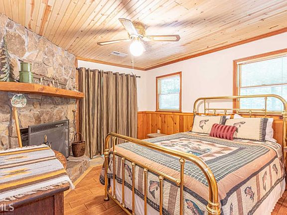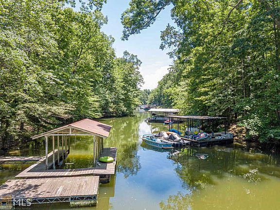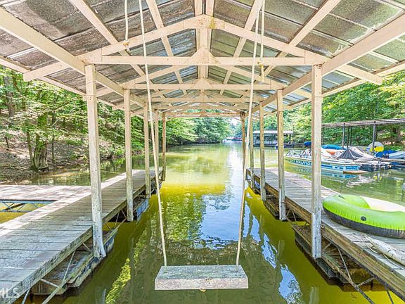 2 Bedroom Lake Lanier Cabin Nestled on 7+ Private Acres with Single Slip Covered Dock. If you are looking for Lake Life & a Mountain Cabin to Get Away from Everything, this is for you. Home features screened-in porch & a deck overlooking creek. Short walk down a nature trail to the dock in private cove. Home has metal roof, wood burning stove, fireplace, granite counters. Potential to add a 2nd home or sell off a buildable lot with survey & county permitting. Come make this your dream getaway home.