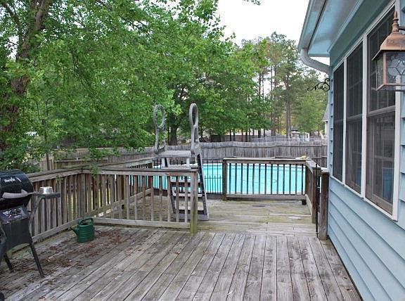 Enjoy the privacy of this immaculate 4 bedroom home in a great neighborhood. The sunroom overlooks a large patio and above ground pool all of which is very private. The double attached carport can be used as covered recreational area. The wet bar and the vaulted ceiling with beams adds space and charm to the great room. Freshly painted inside and out and new laminate flooring in the kitchen.