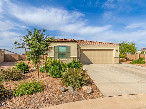 A stunning, highly upgraded home on an oversize cul-de-sac lot with a resort style backyard is ready for you! This north/south facing home consists of 3 bedrooms, 2 bathrooms, and an office/den. The split/great room floorplan is equipped with luxury tile in the main living areas, upgraded carpet in the bedrooms, planation shutters, surround sound, ceiling fans throughout, high end fixtures, and more. The chef's kitchen features white cabinets with hardware, large center island, stainless steel appliances including a built-in microwave, oven, and pantry. There is a large master bedroom that overlooks the paradise of a backyard with the master bath including separate shower/tub, dual sinks, and a large walk-in closet. As you walk out the 3 panel sliding glass doors you will be greeted by an oasis! There is a generous-sized covered patio, a sparkling play pool, custom pergola entertainment area, professional landscaping with gorgeous low maintenance plants and shrubs, small grassy areas, custom workshop, and RV/double gates for easy backyard access. The professionally built 16X12 workshop matches the house and includes electric, ventilation, and custom barn door for all your projects! The home includes a 2-car garage with a dedicated breaker for a freezer. There is added concrete to extend the width of the driveway and walkway from the front yard to the backyard. Too much to list, come see today!