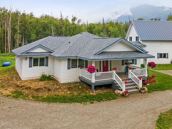 Perfect property for independent or off-the-grid living. Plenty of land for garden, chicken coops, horses and large home with MIL for families that are looking to combine resources and have separate living spaces. Close to Hatcher's Pass and the new Skeetawk ski lift, dozens of trails for fat tire biking, xc skiing, ATVing and many that are groomed all winter long. Updated kitchen in 2022and newer stainless steel kitchen appliances, commercial w&D, newer water filtration & water softener system. 20x35 quanta hut style garage/hay storage - building rated to hold 10 foot snow load and garage doors rated for 300 mile an hour winds. New circular driveway added in 2021 with easily accessible trailer parking. 2 large chicken coops with large fenced in runs that will keep your precious chickens safe from predators. Priced to sell in a great location! Bring your offers.