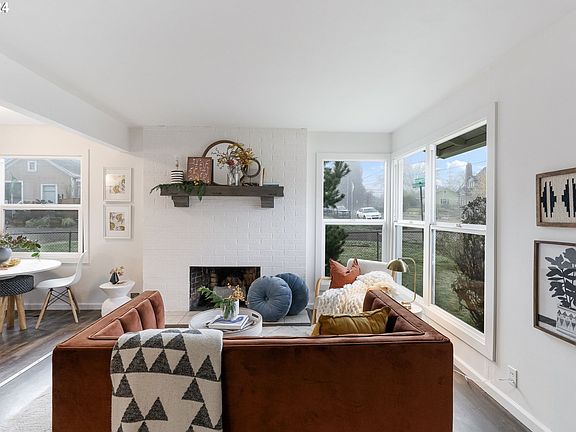 Welcome to this darling one level home located in the heart of St. Johns. Enter into the living room with a cozy wood-burning fireplace and large corner windows with tons of natural light. Through the living room is the open kitchen and dining nook plus access to the backyard. Down the hall are three bedrooms that share an updated full bathroom with subway tile and tub. The attached garage has laundry and storage. Positioned on a corner lot the yard is fully fenced with a patio on one side and large side yard with raised garden beds and plenty of space to play. (Note, the seller explored subdividing the lot and it sounds feasible - buyer to do all due diligence regarding this.) Enjoy all the neighborhood has to offer! This home is just blocks to a neighborhood coffee shop and taqueria plus less than a mile to many local restaurants, cafes, shops, businesses and services in the hub of St. Johns. [Home Energy Score = 5. HES Report at https://rpt.greenbuildingregistry.com/hes/OR10182909]