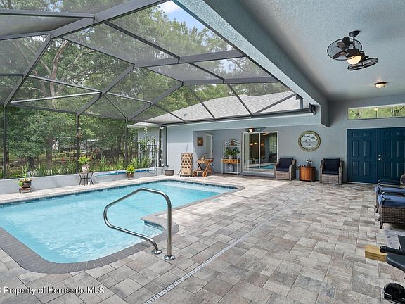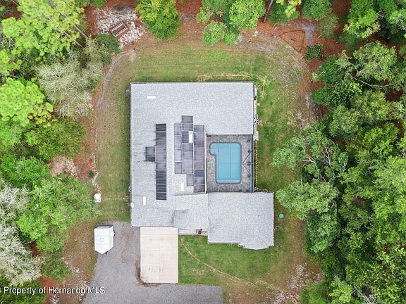 Let this be YOUR new dream home!! This 2020 built, Cabana Style home is ready for its new homeowner. 3 bedroom, 3 bath, 2-car garage with NO HOA, NO CDD!! Turnkey home that is a great space to entertain for your family/friend gatherings. Come and enjoy this laid-back & peaceful setting. Sitting on 5 acres and surrounded by majestic trees with a Code Accessed Entry Gate. Walk through the double door entrance into the brick-covered patio where you can enjoy your In-Ground Pool on those sunny Florida days! Open floorplan with high ceilings. Beautiful kitchen with granite countertops, stainless steel appliances, and access to your enclosed patio for morning coffee. French & Sliding Glass Doors throughout the home. Spacious master bedroom with views and access to the pool. Sit out next to the pool while watching and listening to the birds. Third bedroom is treated as an in-law/guesthouse with it's own living room, fireplace, kitchen, and bathroom without having to enter the other portion of the home. Plenty of storage space with two storage buildings. Solar Panels and Generator are on the property. Step back into time and explore historic downtown Brooksville only 10-minutes away with wonderful restaurants, cafes, and shops. Less than 30 minutes away from Weeki Wachee Springs State Park on State Route 50/Cortez Blvd. Less than 15 minutes to I-75 for easy access to Ocala & Tampa.