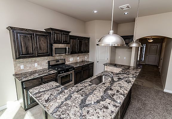 This newer 3 bedroom home offers an open living/dining layout with a HUGE master bedroom, indoor utility room, and outdoor covered patio! The kitchen features stainless steel gas appliances with microwave, quartz countertops, travertine backsplash, and breakfast bar. The home boasts an energy efficient HERS score of 64, guaranteeing you low heating and cooling costs all year long. Includes in garage floor storm shelter for safety during storm seasons.