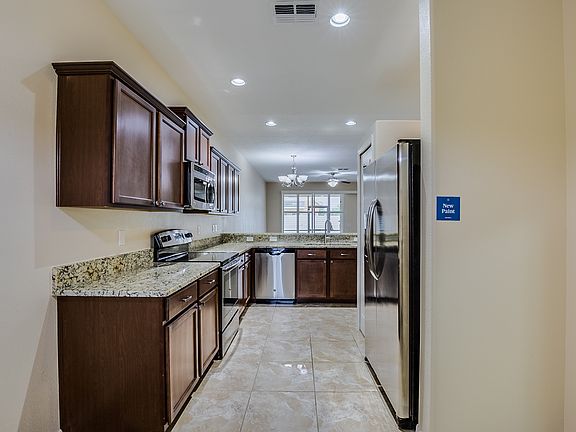 Pride of ownership truly shows in this tastefully updated townhome nestled right in the heart of Trinityâs highly sought after Thousand Oaks community. The home offers 3 bedrooms 2.5 baths and over 2,000 sq ft. Upon entering the home, you will be welcomed into the foyer with access to the 1 car garage, coat closet and half bath just down the entry hall. The open concept kitchen offers plenty of rich wood tone cabinets, granite counter tops, stainless steel appliances, closet pantry, breakfast bar and an eat-in nook. From the kitchen, there is direct sightlines to the dinning room, living room and directly out the sliding glass door. The large sliding glass door has custom rolling shutters and provides direct access to the screened lanai and fully fenced in backyard. There is brand new, high quality laminate wood flooring throughout the main floor with complimenting neutral tile in the kitchen. Up the stairs is a large upper landing area which offers a nook and a split bedroom floorplan. The large master bedroom includes a walk-in closet with custom closet organizers and a master en-suite with dual sinks, tile shower with glass door and a garden tub. The 2 other guest bedrooms are spacious and feature custom closet organizers, as well. The laundry room with built in cabinets is also upstairs for easy convenience. There is a guest parking lot, just a short stroll from the front entrance to the community. There is a new nature trail nearby and the home is conveniently located just off Trinity Blvd. and minutes drive to FL-54. Local shopping, restaurants, golf courses, Trinity Hospital, and the Suncoast Expressway is short drive for easy commuting. This townhouse is a must see and will not last long!