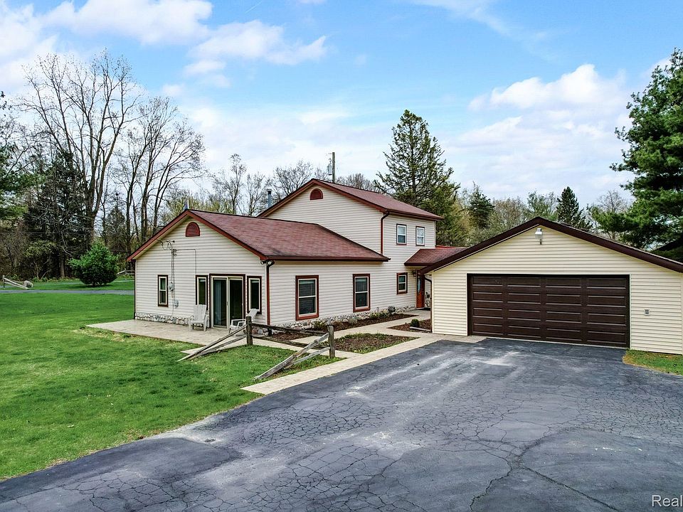 Welcome to your secluded 1.5 acre, 3 bedroom, 2 full bath home in Clarkston for only $340,000. Enjoy the new kitchen ***NEW REFRIGERATOR AND STOVE COMING TUESDAY*** including new cabinets, granite counter tops, scratch resistant flooring, and stainless steel appliances. The two garages and ample storage space are great for anyone needing extra room for tools or hobbies, and the above-ground pool with a new solar cover is a wonderful addition, especially for the coming warmer months. One of the best features of this move in ready home is the huge bedroom ensuite with a deck balcony offering a perfect spot to relax and enjoy the privacy of the back yard. The newer AC, furnace, and windows are valuable improvements that can provide peace of mind to potential buyers. Entertain with ease in the open floor plan, featuring 9-foot and vaulted ceilings, offering seamless access to the front patio from the family room through a large door wall. Conveniently located near Dixie Hwy for easy commuting and free from HOA restrictions. CLICK ON THE 3D TOUR ICON JUST UNDER THE MAIN PICTURE. Buyer and buyer agent to verify all information. Pictures with lot lines are estimated markers.
