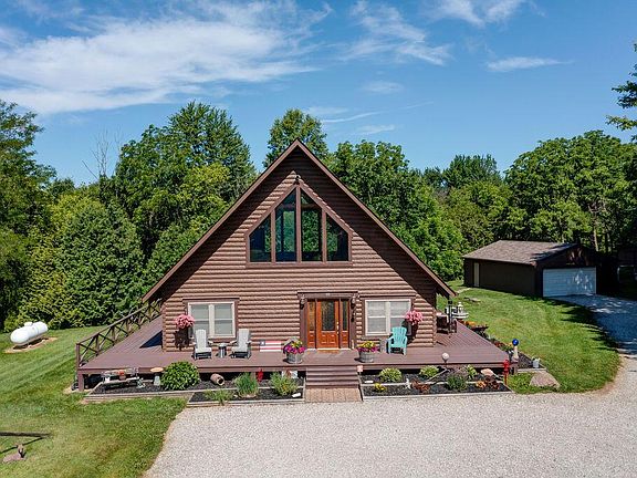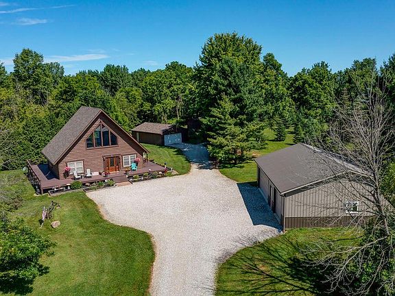 This meticulously cared for property has it all! Location, 5 out buildings, 7.5 acres, pond and beautiful log style home. The home is gorgeous was completely renovated in 2012 and includes the following updates and amenities; beautiful hardwood floors, granite counter tops and new cabinets in kitchen, matching stainless steel Samsung appliances, tiled tub/shower in bath, new Rosati windows and roof in 2013. Crawl space has been completely encapsulated. Outside is an 8' wrap around deck, large pond, woods, stream, 32x40 and 24x32 garages that have concrete and electric. Also, a 12x20 yard barn, 13x40 and 10x15 buildings for storage. 3rd bedroom is in the loft w/closet. 15 min to Polaris, 8 min to Tanger Outlets and 8 min to I-71. You'll love the peace and serenity this property has to offer