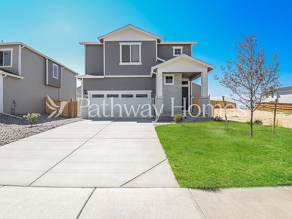 Apply Today It's Free! $75 Application Fee Waived. Enter Code FREEAPP. First month rent free! NEW CONSTRUCTION RENTAL WITH THE OPTION TO OWN! This Pathway Rent+ home comes with the OPTION TO BUY at the end of year 3, PROFESSIONAL PROPERTY MANAGEMENT, TAILORED HOMEOWNERSHIP COACHING, and FREE MORTGAGE-READINESS RESOURCES, all at no extra cost. Plus, there are NO EXTRA FEES OR PENALTIES associated with leaving at the end of your lease. This home features a spacious two-story layout with four bedrooms, two full bathrooms, and a convenient powder bath. The expansive master suite offers a serene retreat with a sitting area, large walk-in closet, and an en suite bathroom complete with a soaking tub, glass-enclosed shower, and double-sink vanity. The open-concept design includes a large kitchen island with a breakfast bar and quartz countertops. Enjoy outdoor living with a charming front porch and spacious back patio. Located in a prime community, residents have access to a park, and are close to Denver International Airport, downtown Denver, and Barr Lake State Park. Don't miss out on your opportunity to create amazing memories in your new home. Apply online or contact us now to learn more! This home can only be rented through Pathway Homes. Pathway Homes will never ask you to wire money or pay with gift cards. Prospective tenants have the right to provide Pathway Homes a portable tenant screening report, as defined in section 38-12-902(2.5), Colorado Revised Statutes. If a prospective tenant provides a portable tenant screening report, Pathway Homes is prohibited from charging a rental application fee or charging a fee to access or use the portable tenant screening report.