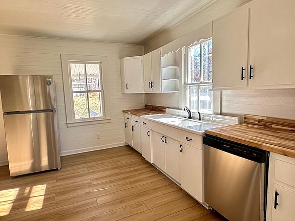 This newly renovated one level living 100+ year old farmhouse offers tons character with todays modern amenities! Cozy up on your 16' front porch adorned with a swing overlooking almost 2 level acres of privacy! Brand new stainless appliances, butcher block countertops, new flooring throughout, new lighting, metal roof, and a spacious deck for family entertainment!