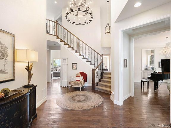 Nestled in a tranquil and friendly neighborhood, this exquisite 6-bedroom, 6-bathroom home offers breathtaking 180-degree views of Standley Lake and Downtown Denver. The property possesses a beautiful green space behind the home, complete with biking and hiking paths, providing easy access to outdoor activities. Just minutes away is trail access for nature lovers and outdoor adventurers. The community offers two sparkling pools, two well-equipped workout facilities, and a peaceful atmosphere that makes this neighborhood truly special. As you step inside, you’ll find hardwood floors throughout the main floor and primary bedroom, adding a timeless elegance to the home. The entryway greets you with a handcrafted inlaid tile mosaic, creating a stunning first impression. The expansive floor plan features three cozy fireplaces, perfect for creating a warm and inviting atmosphere. The recently updated kitchen features a spacious remodeled Butler's pantry and is ideal for both entertaining and day-to-day living. With an open flow into large gathering spaces, this home is perfect for making lasting memories. Indulge in ultimate relaxation with a hot tub that offers complete privacy—your peaceful retreat in the comfort of your backyard. The finished basement adds even more living space to this already expansive home, offering endless possibilities for a home theater, game room, or extra bedrooms. Additionally, there’s plenty of unfinished space for all your storage needs. Step outside to the fully covered, east-facing deck—a perfect spot for relaxing in the shade while enjoying stunning views. Whether you’re hosting friends or enjoying a quiet evening, this outdoor space will become one of your favorite features of the home.