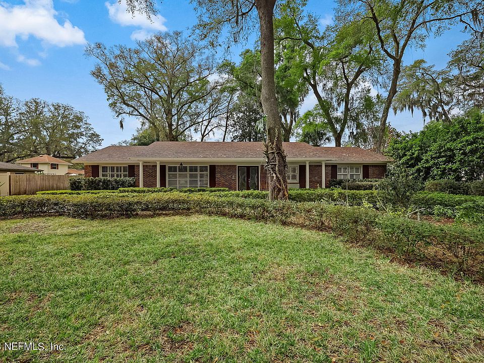 This beautiful ranch home has on open airy floor plan with lots of light throughout, Mexican terracotta tile flooring, plantation shutters, large living room with built ins, great room with fireplace and large atrium doors to fenced backyard, office/dining with built ins, and more. The kitchen features subway tile backsplash and an apron front farm sink. The third bedroom has had the closet removed but a wardrobe could easily be added or the closet built back in. There is a large walk in pantry adjacent to the kitchen and inside laundry room with storage space. New roof in 2021, new AC in 2019, septic replaced in 2011.