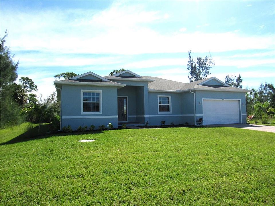 Don't miss the opportunity to own a brand new home in the waterfront community of South Gulf Cove! With almost 2,000 s.f, of living space, this open floorplan has 3 bedrooms, 2 baths plus a bonus room, with French Doors, which would be perfect for a home office, den or private retreat. There are 9 foot ceilings and 8 foot interior doors throughout plus 18 x 18 tile floors in the main living area throughout except for the bedrooms. The gourmet kitchen features granite counter tops, 42" cabinets and stainless appliances and an island with a breakfast bar. The ensuite master bedroom has 2 walk in closets, double sinks and large walk in tile shower with glass enclosure. Enjoy relaxing on the 27 x 10 lanai with pavers. South Gulf Cove is just minutes from Boca Grande, Englewood/Manasota Key beaches, restaurants, shopping, boating, fishing and golf. Call for your private viewing today. You'll want to call this home!