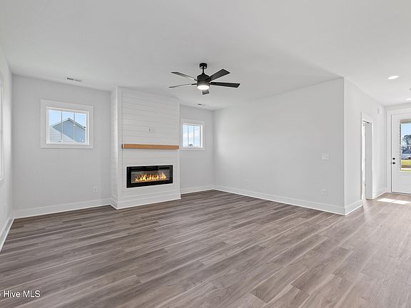 Welcome home to this stunning semi-custom Smithfield Plan, thoughtfully designed with 3 bedrooms, 3.5 baths, a spacious bonus room (which could also be used as a bedroom), and over 400 sq. ft. of walk-in storage! With more than 2,400 sq. ft. of living space, this home offers the perfect balance of craftsmanship, comfort, and functionality. Beautifully situated on a 0.92-acre lot, there's plenty of room to spread out and enjoy the outdoors. Inside, the open-concept design is anchored by a floor-to-ceiling shiplap electric fireplace, surrounded by LVP flooring throughout (no carpet), craftsman-style trim, and energy-efficient YKK windows. The chef-inspired kitchen is a true showstopper with soft-close cabinetry, Level 2 quartz countertops, tile backsplash, 5-burner range with convection bake/broil and built-in air fryer, and a large corner pantry with 3/4'' wood shelving. You'll also love the stainless steel single-bowl apron sink and refrigerator included—just move right in! The primary suite offers a peaceful retreat with a tiled walk-in shower, designer Moen/Delta fixtures, and a custom walk-in closet with wood shelving. Step outside to enjoy your screened back porch or relax on the covered front porch. Additional highlights include ceiling fans in all bedrooms, a dedicated laundry room, and 30-year architectural shingles. Perfectly located minutes from major interstates, this home delivers both luxury living and everyday ease—all on nearly an acre of land.