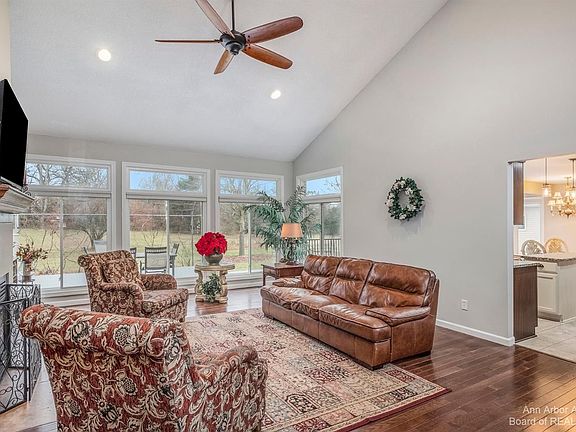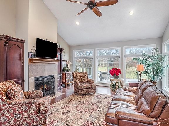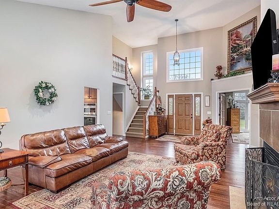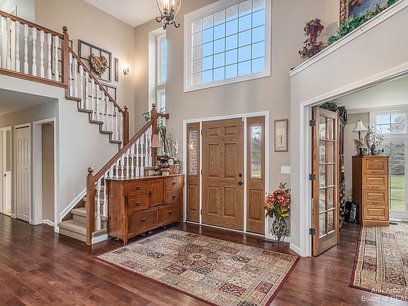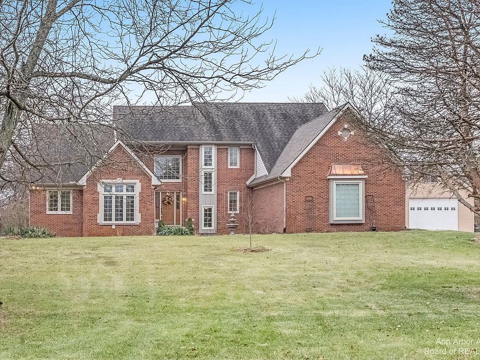 Over 4000 square feet of living space. Saline Schools. York township Taxes. Welcome home to this spacious executive style home that sits on almost 3 acres. Looking for serenity, but proximity to everything with Saline schools? Look no further! Walk into the welcoming entry with high ceilings, Office with french doors, built-ins and large windows for great light. The kitchen has granite countertops, stainless steel appliances, eat-in kitchen with views of the backyard and a huge walk in pantry. Primary bedroom suite on the first floor with a walk-in closet, walk-in shower and claw foot tub. Upstairs you will find 3 nicely sized bedrooms with large closets and another full bathroom. The lower level has a second living area, spacious bar area with mini frig and lots of cabinets, the 5th bedroom could be a suite with a sitting room and full bathroom. Plus lots of storage! Outside you will find an outbuilding that has electricity, heated cold and hot water, bathroom with an upstairs bonus room that could be finished. Walk across the street to Sandra Richardson Park to walk the trails or kick the soccer ball around.