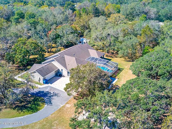 COUNTRY LIVING AT ITS FINEST! Location, Location, Location, all on 4.8 acres! Discover your dream of living in the country with the convenience of shopping, restaurants, parks, and gulf access boat drops a short drive away. This well-kept 3-bedroom plus Office, 2-bathroom, 3 car garage, single-story home is more than just a house; it's a tranquil sanctuary nestled on 4.8 picturesque acres. New A/C and Re-roof in 2016. Spacious 2,976 Liv Sq. ft Home with Soaring High Ceilings throughout! Large Master Suite overlooking the pool that was recently resurfaced. Imagine sipping your morning coffee here or unwinding with a book as you soak in the peaceful surroundings. Split Bedroom Layout for maximum Privacy! HUGE Family Room with endless Natural Light from the Pool Enclosure! Spacious Kitchen with plenty of counter space and newer appliances. Spacious 2nd & 3rd Bedrooms! Beautiful 30x12 Heated Pool with Spa with peaceful views of the cleared 4.8 Acres! 30x40 Pole Barn with a 20'x40' lean in with garage door, offers ample space. Possibilities are endless! Simply seeking the peace and serenity of country living, this property is a rare gem. Your dream is just a showing away, so seize this opportunity to make 9465 May Gold Lane your new address and embark on a life of comfort, adventure, and natural beauty. Schedule your private showing today and experience the allure of this unique retreat. Make sure to check out the 3D Walkthrough.