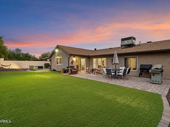 Welcome to your desert retreat in the heart of Scottsdale's coveted Cactus Corridor. Set on a prime lot with no HOA, this single-level home combines versatility, privacy, and stunning McDowell Mountain views. Whether you're seeking a multi-generational layout, a short-term rental opportunity, or simply a low-maintenance primary home, this property offers the rare flexibility to suit your lifestyle. Inside, two distinct primary suites provide separation and comfort—one with ADA accessibility and thoughtful features for long-term livability, the other with a walk-in closet and spa-inspired bath. The open-concept design is filled with natural light, enhanced by vaulted ceilings, tile flooring, and custom finishes throughout. The kitchen serves as the heart of the home with ample cabinetry, generous prep space, and stainless steel appliances ready for everyday living or effortless entertaining. Step outside to enjoy the ease of desert living. Dual patios, lush turf, mature trees, and a separate storage shed create a functional and inviting backyard that feels both private and practical. Just moments from top-rated schools, shopping, dining, and the Scottsdale Greenbelt, this location blends tranquility with accessibility. Move-in ready and STR-friendly, with modern updates and a smart layout, this home offers both comfort and long-term potential.
