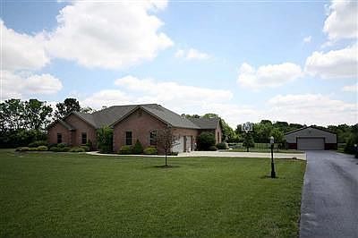 Fully equipped equestrian estate boasting 7+ acres, Amish-built 4-stall horse barn w/tack room, outdoor arena, added drainage & separate 50x30 insulated pole barn (electric+concrete floors) which is perfect for a workshop or storing 10+ cars. As if these fine features are not enough for you to make an offer immediately, you will thoroughly enjoy sipping your morning coffee on your paver patio overlooking your private outdoor oasis...in-ground pool, pool house with full bath, fire pit, stocked pond + trees galore. You will be equally pleased inside given the gourmet kitchen with granite counters/huge walk-in pantry /planning desk + the cathedraled great room which opens up to the kitchen and is adorned with a beautiful stone fireplace. Note: This is a low maintenance custom built brick ranch with a huge finished basement. Updates include, but are not limited to: Furnace/Pool liner(17), Outdoor arena+drainage/AC/Pond Compressor(16). Call now before you are too late!