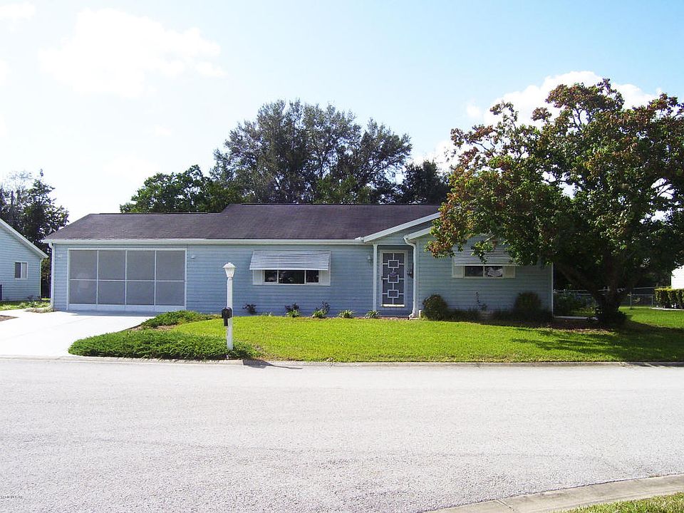 Spacious/well maintained split Bedroom Palm II w/1678 sf living area w/private fenced backyard. Glass enclosed 24x12 Fla Rm under house roof/heat/air-same level as rest of the house. PLUS 20x12 enclosed Lanai w/sliding acrylic windows off Fla Rm, & 12x12 attached Golf Cart Garage/Storage Shed. Shared Private well for irrigating lawn/shrubs for huge savings on water bill. Inside of home features laminated wood floors throughout main living areas, including Fla Rm. Cathedral, knockdown ceilings (no popcorn). Large kitchen w/lots of cabinets/counter space. Ceramic tile floor, glass-top stove, overhead microwave, double-door refrigerator w/ice/water dispenser in door. Painted drive, walk & garage floor.Oversize 26x20 garage. Sliding privacy screens on garage door, laundry tub. Freshly painted.