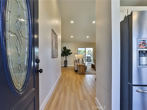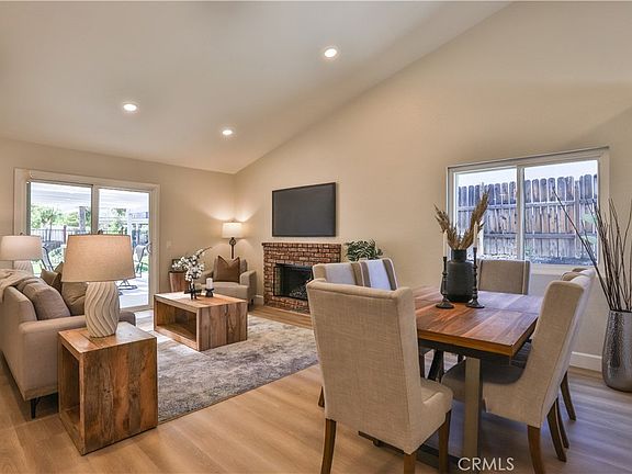 Welcome home to this stunningly remodeled single-story residence boasting an open floor plan with vaulted ceilings and an abundance of natural light. This north facing home features dual pane windows, a leaded glass front door, updated kitchen & bathrooms with quartz countertops and new fixtures, and stainless steel appliances (refrigerator included), this home is move-in ready. Enjoy the luxury of newer vinyl plank flooring in living areas and plush carpeting in bedrooms, all complemented by fresh designer paint and recessed LED lighting. Acoustic (popcorn) ceilings removed and re-textured. Classic gas fireplace with shimmering decorative glass inside. The primary suite offers a walk-in closet and dual sinks. The exterior showcases fresh paint and a covered patio with a BBQ island. Relax in the large grassy backyard with tropical landscaping, framed by newer iron fencing and offering breathtaking greenbelt and mountain views. Extra wide driveway with gated side access provides ample parking for all your toys. Low taxes, NO MELLO ROOS, and low HOA dues make this an exceptional value. California Meadows HOA has a community park and dog park. Located near Dos Lagos & Crossings shopping centers, enjoy convenient access to shopping, dining and entertainment.