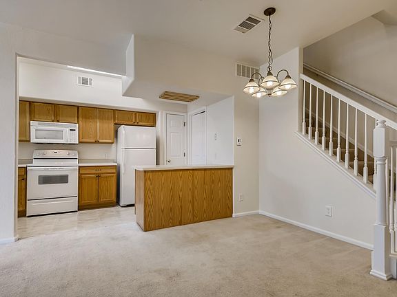 2-story layout Large privately owned condo. Centrally located, light and bright, flooded with natural light and mountain views. Close to Cherry Creek, Denver Tech Center, Lowry, DIA, Medical School (School of Medicine), Anschutz Medical, University Hospital, TAVA Waters, and Downtown only 20 minutes away. Just minutes from I-25 and I-225, King Soopers, Sprouts, Safeway, Target, Costco, Lowes, Nine Mile Light Rail station, banks, restaurants, shops and Cherry Creek State Park. Bike to the Highline Canal trail, Westerly Creek trail or Cherry Creek bike path. Small pocket park across from complex. RTD 83L bus stop at complex goes to Cherry Creek, Downtown Denver, Civic Center and Nine Mile station. Central air conditioning keeps you cool, central gas heat keeps you warm. All appliances that you would expect included, refrigerator, stove, dishwasher, garbage disposal, built-in microwave, washer/dryer in unit. Quiet and peaceful location so you can sleep well at night. The main level includes an open floor plan with living room, dining room, full kitchen and half bath. The kitchen comes complete with fridge, dishwasher, stove, built-in microwave, as well as large pantry and lots of cabinet space. Just off the kitchen there is a convenient laundry and utility room with a Washer and Dryer. Comfortable living room includes private Balcony and gets abundant sunlight thanks to greenbelt it's facing. The upstairs area features a master bedroom, attached Master Bathroom and walk in closet, full size second bedroom, second full bath, and an open Loft. Both bedrooms facing greenbelt and park and have Mountain Views. Friendly, quiet neighborhood. Lots of storage space. Light Color Carpet and Paint. Cherry Creek Schools. Swimming Pool. $1990/month plus $1990 deposit. Background/credit check is required. No smoking unit. Sorry no pets allowed. PLEASE LEAVE A MESSAGE to schedule a viewing. Virtual Tour upon request. SE Denver SE Aurora SE 12 month lease