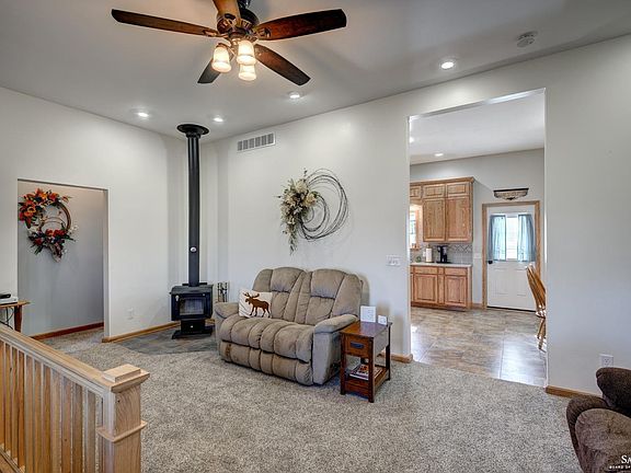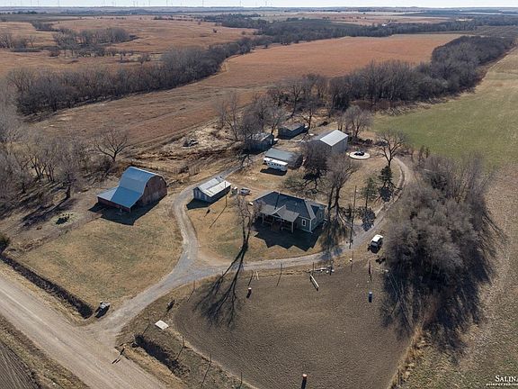 Gorgeous Country Property with Endless Views in Southeast of Saline School District! This Fully Re-Designed 4 Bed, 3 Bath Home w/ Basement sits on 9+ Wooded Acres, just 4 miles southeast of Gypsum, and includes a Huge Rustic Barn, Wood Heated Shop, 2 more Outbuildings complete w/ Concrete Floors, and a Great Setup for Cattle including Sectioned Cattle Corral w/ Loading Chute, Head Stall, and Squeeze Chute. Detailed Covered Front Deck, Living Room warm w/ Wood Burning Stove & Beautiful Finishes that flow into Kitchen & Dining Area boasting Quartz Counter Tops, Glass Tile Backsplash, and Handcrafted Solid Red Oak Cabinets. Three Main Floor Beds, including Master Bed w/ Raised Ceiling, Dimmable Recessed Lighting, and Spacious Walk-in Closet. Beautifully Finished Master Bath has Rich Tiled Floor & Mosaic Tile Deco, Double Onyx Sink, Onyx Shower, and Built-in Shelving. Partially Finished Basement includes 4th Bed w/ Egress and Bath, plus Ready-to-Finish Space for Family Room or more Beds!