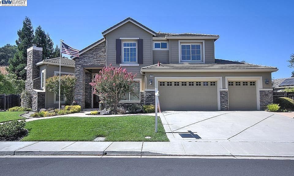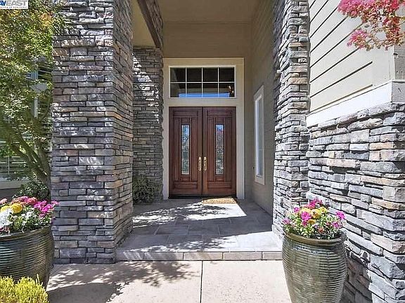 Built in 1999 by Presley Homes, this beautiful semi-custom estate home is located at The Preserve community, a prestigious hilltop development of 100 homes on 300+/- acres. This home sits on a premium lot with no front facing neighbor and backs to permanent open space with Mt. Diablo Views. Very well maintained by the original owners, this home features a well designed floor plan with space for everyone and ideally suited for both formal gatherings and casual get togethers. Highlights include: Dramatic formal entry with sweeping staircase and soaring ceiling. Elegant formal living and dining room with gas fireplace, custom chandelier, and plantation shutters. Spacious granite kitchen with cherry cabinetry, breakfast nook, walk-in pantry with wine storage, and stainless steel SubZero refrigerator. Adjacent family room offers natural stone surround fireplace and media niche and granite topped wet bar with upgraded cherry cabinetry. Executive office/main level bedroom with built in cherry cabinetry and desk and ensuite full bathroom, laundry room, and powder room round out the first floor. Upstairs, double doors lead to the luxurious master bedroom suite with private balcony, wet bar and media niche, and two way gas fireplace. Master bath features oversized stall shower with tile surround and glass enclosure (with Mt. Diablo views!), Jacuzzi soaking tub, dual vanity and make-up counter, and his and hers closets. 3 additional comfortably sized bedrooms feature ensuite bath or Jack and Jill bath, mirrored closet doors, and one with built in cabinetry and desk for alternate office space. Additional amenities include: Built in speakers, recessed lighting, security system, central vacuum, dual zone HVAC system, and water softener. Outside, the private, fenced rear yard backs to permanent open space with views to Mt. Diablo and features multiple salted concrete patios and sitting areas, built in stainless steel DCS BBQ, and small vineyard and rose garden among mature landscaping. 3 car garage with loads of storage. Monthly HOA dues of $160. All this and top rated Pleasanton schools, proximity to Historic Downtown, 580/680 freeways and BART, award winning Livermore Valley Wineries, San Francisco, and Silicon Valley.