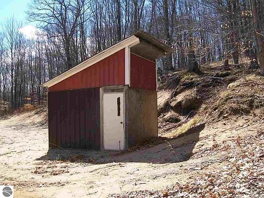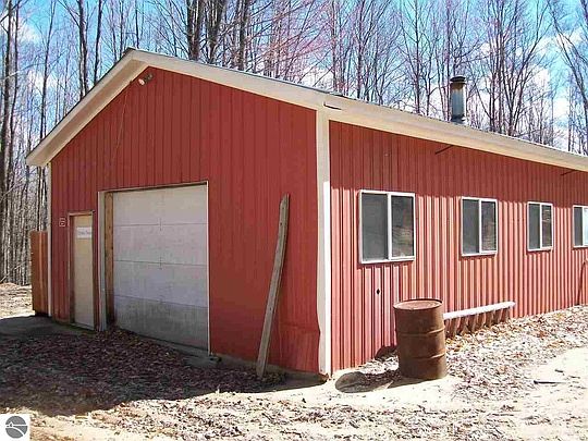 Four bedroom, 2 bath, large great room (partially furnished) on 10 acres (hardwoods). 12 X 42 ft screened porch and 24 x 32 pole barn. 2 miles by road from CCC Bridge, Manistee River. Propane hookup and two generators (propane powered) make for convenient living while "off the grid". 105' well dug in July 2009. Septic tank. Phone and washer/dryer hookup available. State land borders the east and north lines. Makes a great vacation home or camp for any organization.