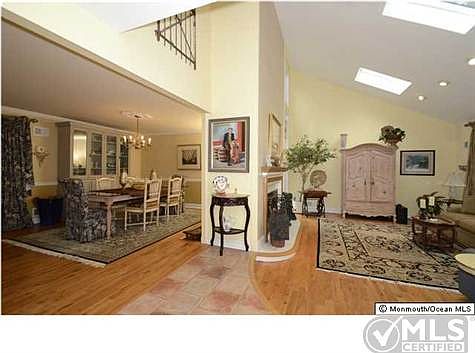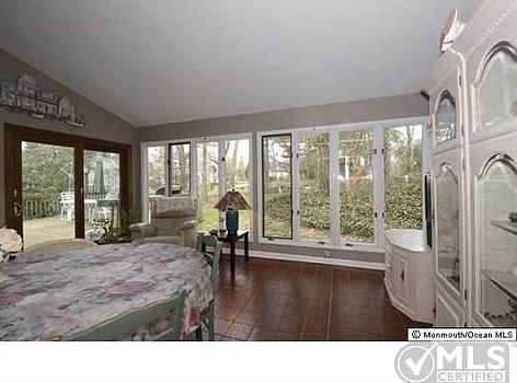 Nestled in the hills of Brielle on almost one acre, this Contemporary Colonial Rathjen built home is in close proximity of public access to the Manasquan River. The home features a 2 story foyer which opens to the Living Room and Dining Room and has a 2 sided frpl. A light airy year-round sunroom opens to a deck designed for entertaining. Eat in kitchen, great storage, full bsmnt, 2 car garage, 1 yr. old Timberline roof and central vacuum. No damage from Super Storm, Sandy.