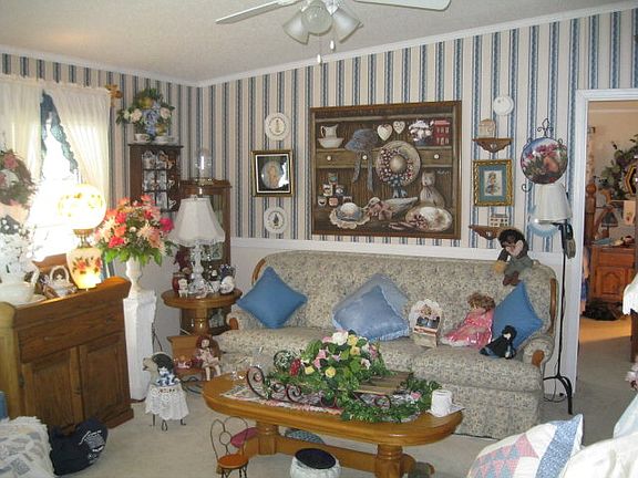 HOME IS A DOUBLE WIDE ON A PERMANANT FOUNDATION. LARGE KITCHEN WITH LOTS OF CABINETS AND ALL APPLIANCES. GLAMOR MASTER BATH WITH HUGE TUB. MASTER BEDROOM HAS WALK IN CLOSET. 10X15 SUNROOM, HUGE SCREENED SIDE PORCH, AND COVERED FRONT PORCH WITH BUILT IN GAZEBO. FRONT YARD IS BEAUTIFUL WITH LOTS OF SHRUBS AND GARDENS AND COUNTRY PICKET FENCE.