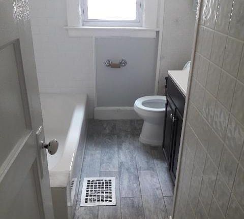 Lovely, spacious 2 bedroom, 1 bath + living room and a dining room that could be used as a bonus room. Rent - $1650 a month Large apartment - 1100 square feet 1 off-street parking space included Free laundry on site in basement Entire apartment freshly painted Brand new bathroom kitchen upgrades such as brand new stainless steel refrigerator granite style countertops Private deck Separate utilities and gas heating Lead paint free certification issued by City certifying entire building is free of lead paint Close to bus stop, train, shopping, university, and highway. Some storage area in basement Available immediately $2,500 security deposit Minimum credit 625 Subject to background check No prior evictions Minimum income: $4125 per month No dogs, but cats possibly ok with added pet fee Strict No Smoking Policy LL pays water, sewer use, lawn maintenance, snow removal, customary repairs / maintenance.