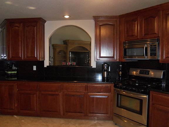 This is an absolutely beautiful 3 bedroom/ 2 bath home that has custom cherry cabinets, granite counters, stainless appliances, travertine flooring, upgrade berber carpeting, large master suite with walkin closet and true tile walkin shower. Back yard is nicely landscaped with trees, grassed, rocked areas and lovely covered back patio with stamped concrete. Absolutely wonderful area to enjoy outdoor bar-b-que or just relaxing in the evening breeze. This is a MUST see for any potential home buyer.
