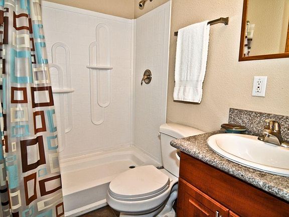 Studio duplex available for rent. Super-insulated concrete park model. Full-sized bathroom with tub/shower. Kitchen includes cooktop, refrigerator, sink and microwave. Full-sized bed, sofa and flat-screen TV included! Commercial grade laundry facility on site.