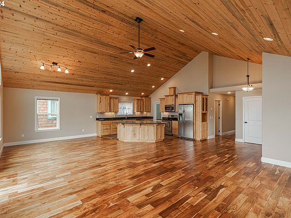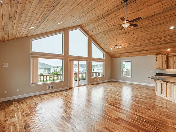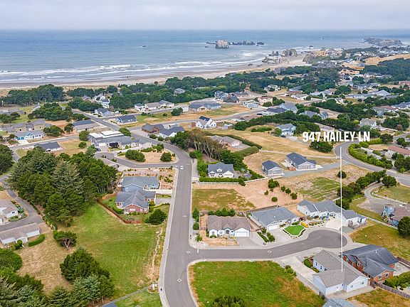 This beautifully crafted, one-story custom home is just moments from Bandon Beach. Built in 2014 and situated in an upscale neighborhood, this residence is ideal for those who appreciate quality and attention to detail. The exterior has been freshly painted, giving the home a pristine look. Inside, vaulted pine ceilings and tall windows provide an abundance of natural light. You'll find Acacia wood and tile floors throughout, with cozy carpeting in the bedrooms. The kitchen boasts hickory cabinets, sleek granite countertops, stainless steel appliances, and a convenient pantry. There is also a peek-a-boo ocean view from the front balcony. This impeccably maintained home is ready for you to make it your own.
