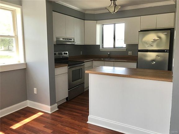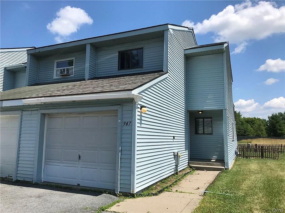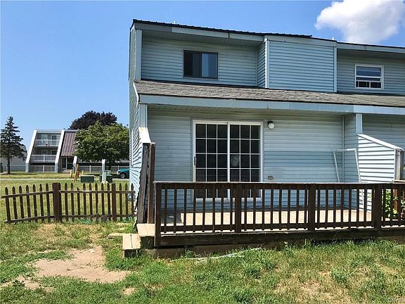 LOOKING FOR AN AFFORDABLE ALTERNATIVE TO RENTING? Here you go! This end unit townhouse has a fully fenced yard, large deck, and attached garage. Featuring two bedrooms, full bath, and laundry on second floor. Downstairs is an open concept kitchen and family room area with vaulted ceilings, breakfast bar, stainless appliances, and half bath. Sliding glass door leads to back deck and fenced yard. The townhouse has been freshly painted a neutral grey throughout, all trim has been freshened with white gloss, and brand new laminate flooring installed in the entire unit. No HOA fees. Tucked in near the golf course, just blocks from Samaritan Medical Center, stores, schools, and a quick commute to Fort Drum. Call or text today...this one is PRICED TO SELL!!!