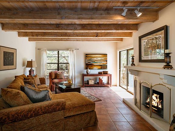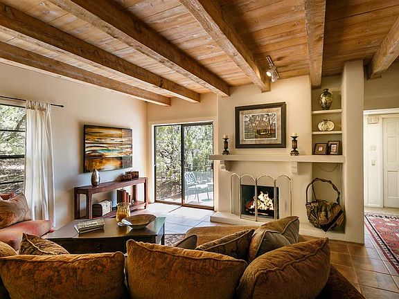 ONLY FREESTANDING UNIT. Beautiful and private in-town living on the North side. This charming freestanding, single level condo in North Hills Compound is minutes from the Santa Fe Plaza and Canyon Road. Spacious and open floor plan with tile and wood floors. Dining room and breakfast area. Two fireplaces. New roof in 2013. All appliances stay. Attached two-car garage. Perfect lock and leave or full time residence. Short-term rentals allowed with permit.